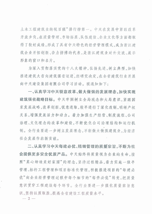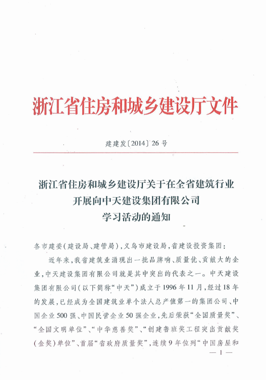 《浙江省住房和城乡建设厅关于在全省建筑行业开展向6163银河建设集团有限公司学习活动的通知》